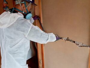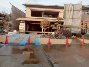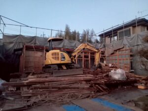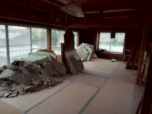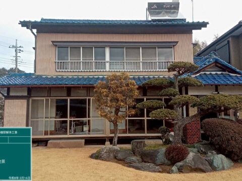守谷市板戸井 切り離し解体工事 2026/04/22 施工前 施工後 施工中 施工内容 家屋切り離し、解体工事 石膏ボードにレベル3アスベスト有り。暴露防止のためマスク着用。 施工日時 2月 施工日数(時間) 12日間
